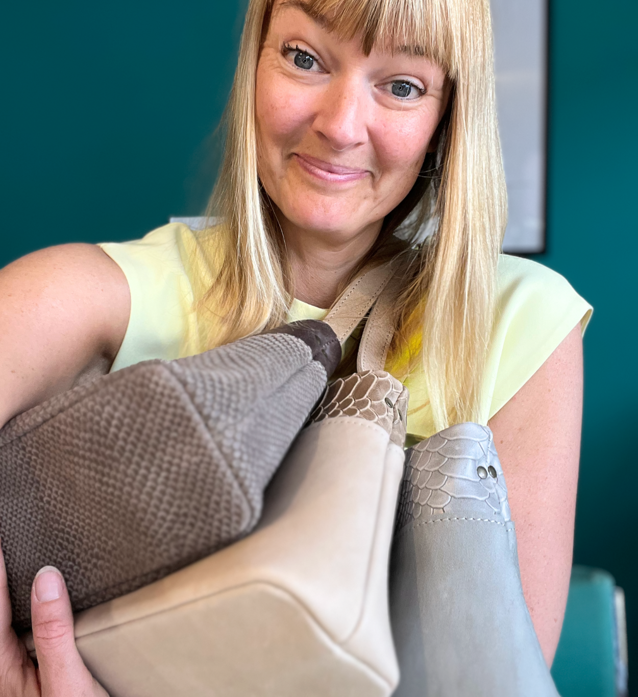 Don’t let the clean silhouette fool you. It easily fits your essentials think: Phone, Wallet, Keys, Sunglasses, Lip balm, hand cream, notebook